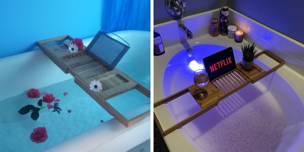 5-Star Review: “This thing takes bath time to a whole new level. I can have everything I might want within easy reach. My tablet, book, and/or phone isn't going to get wet, I can have an icy drink, a candle, etc. It slides open to fit most any size bathtub and stays where you put it. Good quality workmanship, I would definitely gift this product.” – Angela Porter