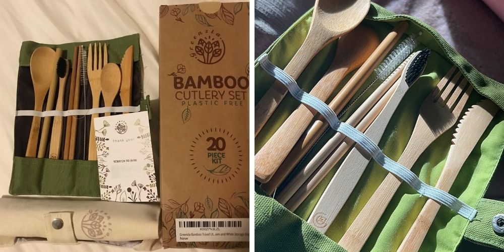 5-Star Review: “I like that it is wood, inexpensive and reusable. I recommend it to anyone. Very soft cloth it is wrapped in and pleased with the style of the utensils.” – James