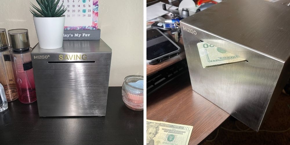 5-Star Review: “Love this little bank/savings. Here’s a money-saving tip/goal/challenge. So I put numbers 1-100 number stickers on this box on both sides(each side has 1-100). Whatever dollar amount I have I cross off. So say I put $20 in the banks I’ll cross the number 20 off, $45 I’ll cross the 45 stickers so on and so on. Very a great way to save money without touching it. Btw the savings challenge is supposed to equal 5050 once all the numbers 1-100 are crossed out.” – Shy11