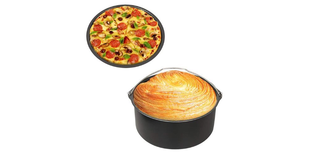 This nifty pizza and a cake pan are designed specifically for use in your air fryer, giving you the ability to whip up pastries from cakes, pizzas, and more with ease. And, with their non-stick coating and dishwasher-safe design, clean-up is a breeze. Customers love how perfectly these pans fit into their air fryers, and appreciate the variety they bring to their baked goods.
