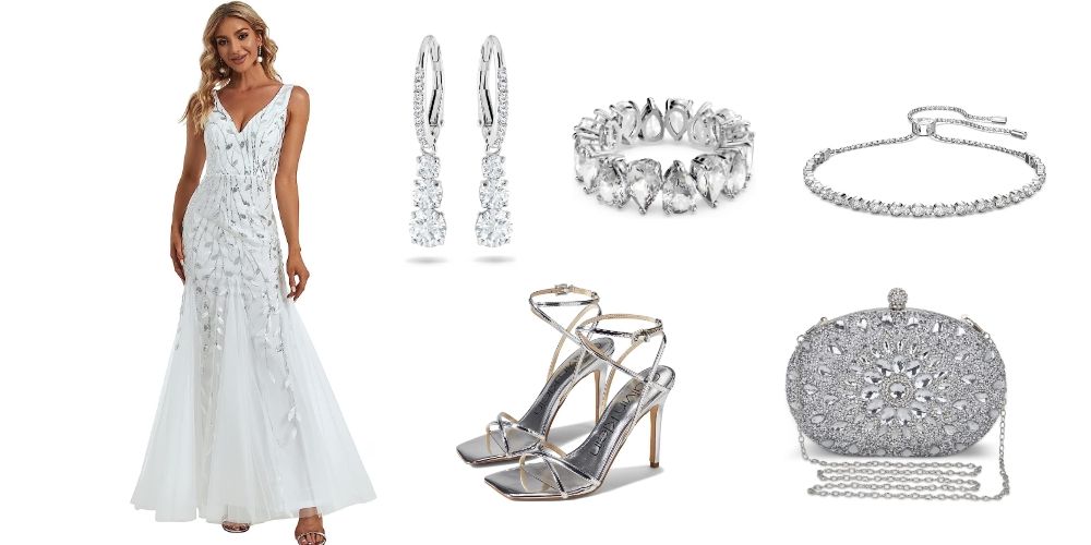 Finally, add a touch of elegance with a romantic updo or beachy waves, and you'll have everyone swooning over your celestial glow. This ensemble is the perfect recipe for an unforgettable night, so go on and sparkle like the goddess you are!