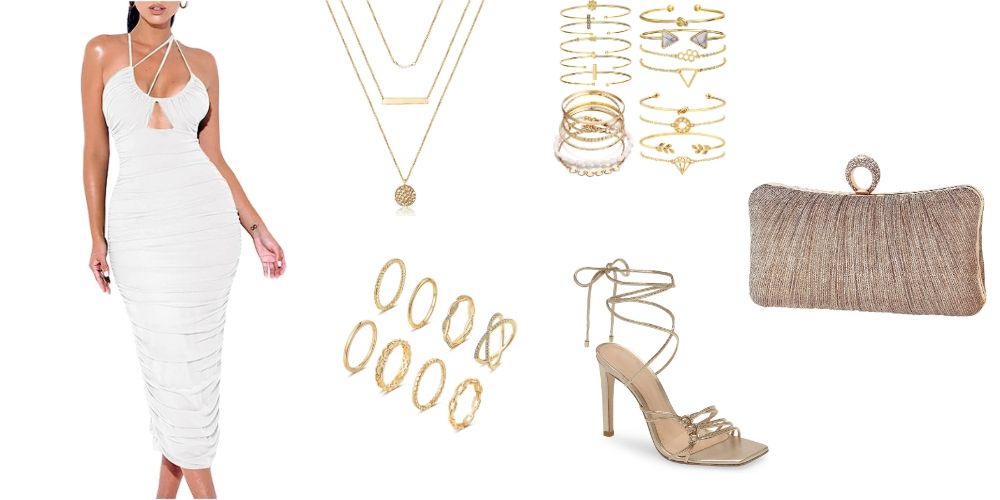 Now, to elevate that heavenly aura, pop on some strappy gold heels that'll make you feel like you're walking on clouds. And don't forget that statement clutch—think bold metallics or vibrant pops of color to really stand out.