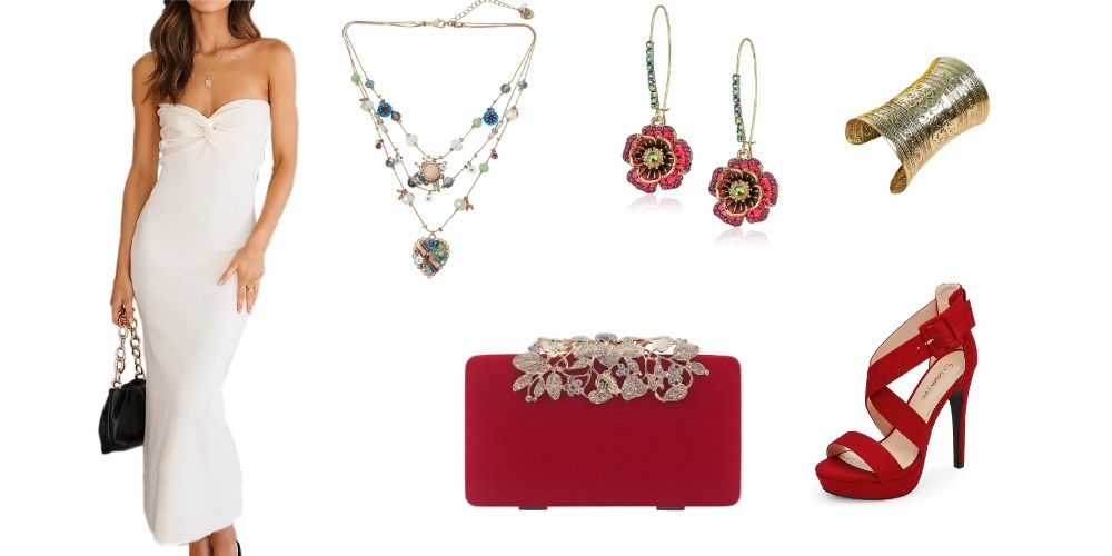 As for your wrist candy, opt for a sleek cuff or a stack of delicate bangles to balance out the look. Now, don't forget those fierce footwear options—sky-high stilettos, elegant pointed-toe pumps, or a pair of strappy sandals will make your legs look endless. And to tie it all together, choose a chic, structured clutch in a contrasting hue for that perfect pop of color.