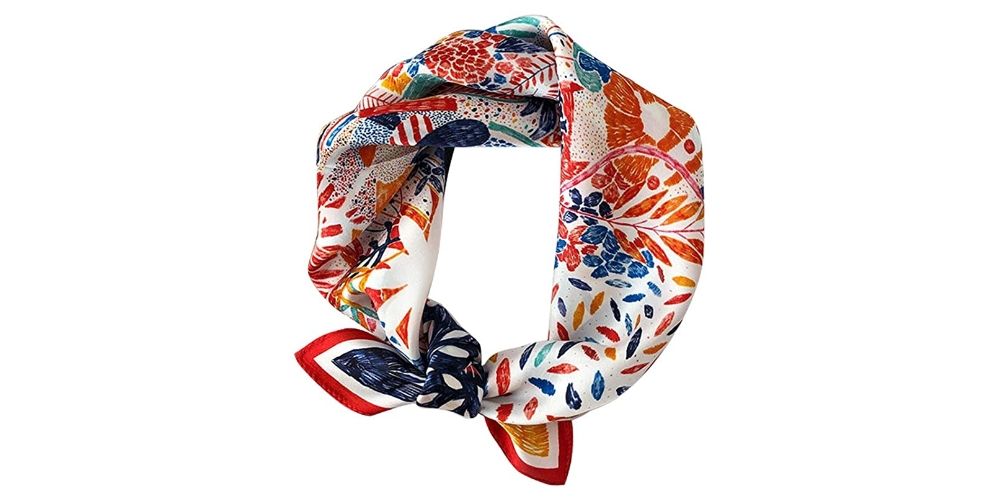 Add a pop of color to any outfit with this beautiful silk scarf featuring a floral design. It's the perfect accessory to elevate your look this Easter season.
