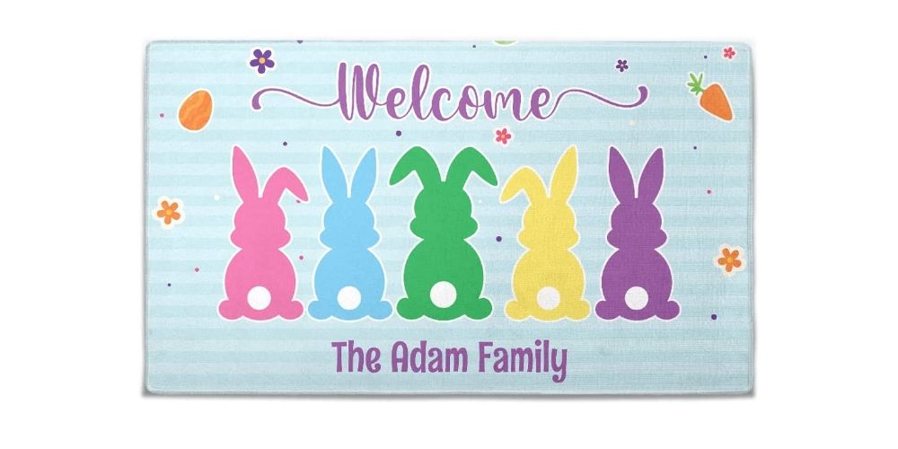 Give your front door a touch of Easter magic with a personalized doormat. These mats feature cute designs and personalized messages to add a personal touch to your home. They make excellent little gifts to add in your Easter baskets too.