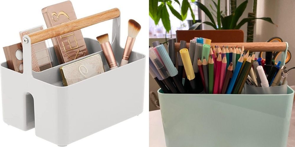 17. This stunning and practical Cosmetic Organizer will help any beauty queen organize all of her cosmetics, making them easy to find and access. Featuring a natural bamboo handle for easy transport and a gorgeous stone gray finish, this attractive storage solution will hold all her beauty items in place. It has five compartments that are perfect for organizing blush, makeup brushes, palettes, lipstick, and nail polish. No more rummaging through drawers looking for the right item - she will have everything in one spot!
