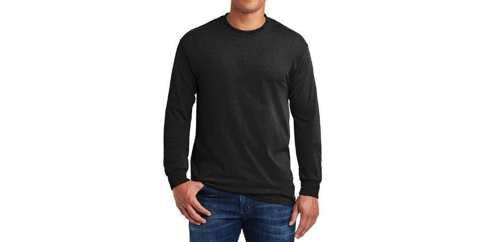 This Gildan ultra cotton long-sleeve t-shirt is soft, and warm, and has earned an impressive 4.5-star rating from satisfied customers. And if you need more convincing, just check out this customer review: "I have bought several of these shirts in various colors and they are a winter/cool weather go-to shirt. They wear and fit well and do not fade or fall apart in the washing. I do air dry to prevent any shrinking. Will buy more."