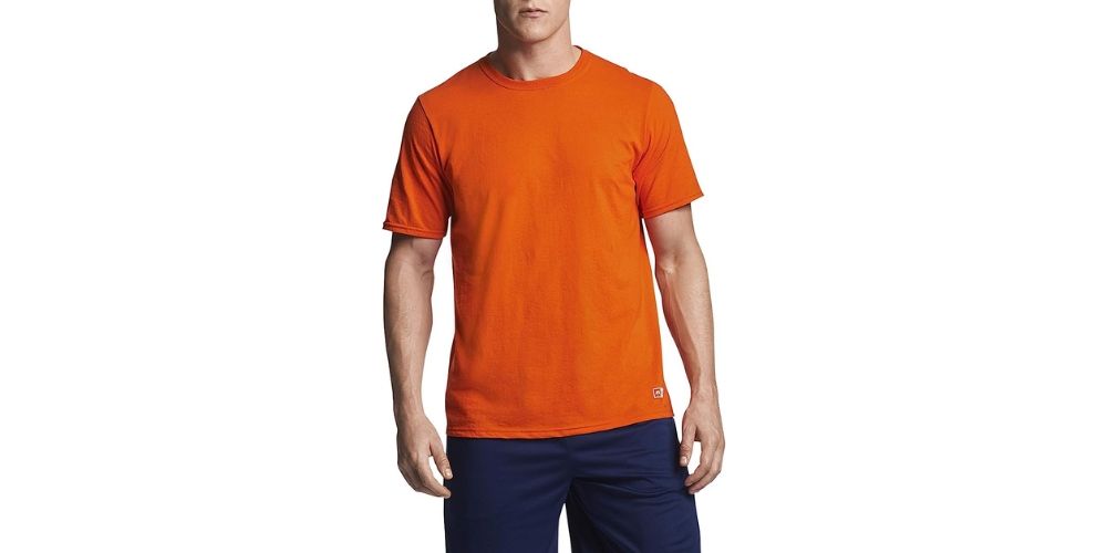 Made with moisture-wicking material, this Russell Athletic men's cotton performance short sleeve t shirt is the perfect choice for running, hiking, or any other physical activity. And with a 4.5-star rating, our customers agree that it's the perfect choice for all your active needs.
