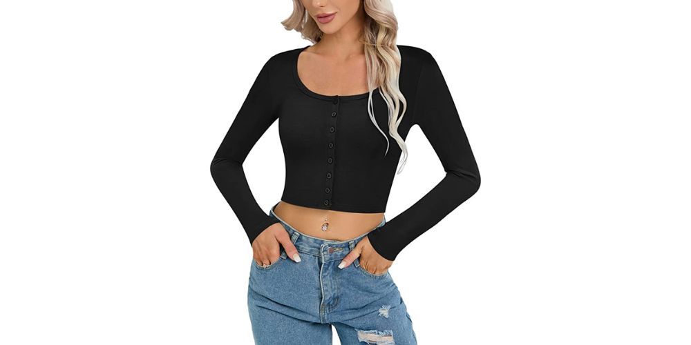 This button-down wonder boasts a flattering scoop neck and long sleeves, making it an excellent choice for any fashion-conscious woman. Stretchy and comfortable, this crop top fits true to size according to one customers, making it an excellent deal. Style it with high-waisted shorts and sandals for a casual summer look, or pair with a denim jacket and heels for a night out.