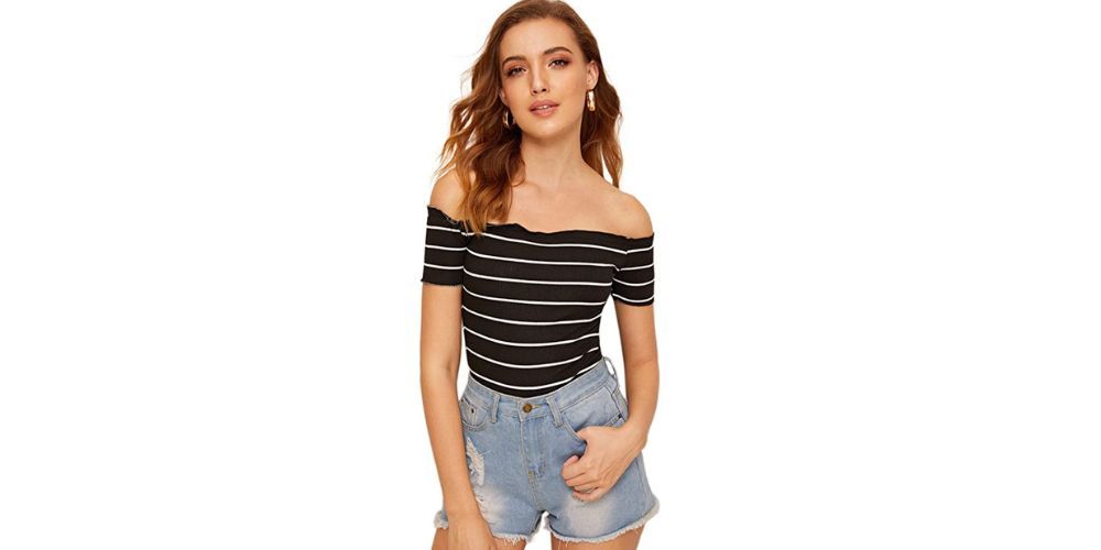 This stylish top boasts a chic off-the-shoulder design with a trendy ruffle detailing and secure elasticized neckline. Made from a blend of cotton and polyester, it's comfortable and perfect for a day out. Customers love how flattering this top looks on them and even said that it is ' a good buy'. Pair it with high waisted shorts and sandals for a casual, summery look or dress it up with a maxi skirt and heels for a night out.