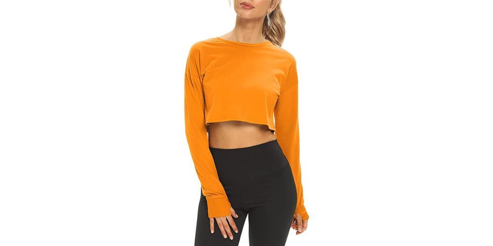 With over 3,500 glowing reviews and a 4.2-star rating, customers can't stop raving about this top. And we can see why! The stretchy fabric is both soft and sweat-wicking, making it the ideal choice for any gym session or athleisure wear. And with thumbholes and a flattering cut, this top isn't just comfortable--it's stylish, too! Plus, with the ability to easily dress it up or down, this long sleeve crop tops is a versatile addition to any wardrobe.