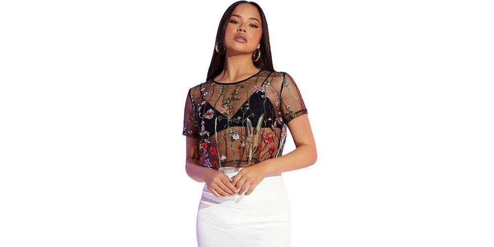 This delightful piece is simply perfect for any event, be it a fun night out or a relaxed day with friends. To enhance its versatility and ensure a bit of extra coverage, you can easily pair it with a spaghetti strap top beneath. Adorned with intricate floral embroidery and crafted from sheer mesh lace, this fashionable item create both sophistication and charm, making it a true customer favorite. For a laid-back day of shopping with your besties, team it with some chic high-waisted denim shorts and comfy strappy sandals. Alternatively, amp up the glamour by pairing it with an elegant midi skirt and your favorite pair of heels for a fabulous night out on the town.