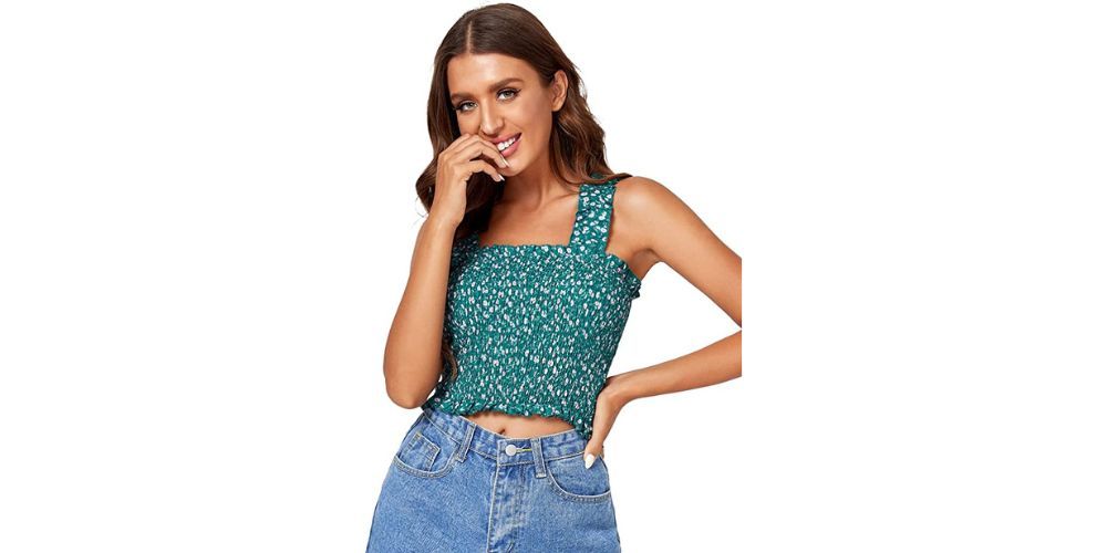 This smocked ruffle crop top is made from ultra-lightweight, breathable fabric and features a square neckline, ruffled short sleeves, and a stretchy, shirred bodice. With 4.1-star average ratings and 1,600 reviews, one customer loved this top so much that they want to wear it every day. And it's easy to see why - the comfortable fit and perfect strap length make it a go-to for any occasion. Dress it up with skirts for a romantic evening out, or pair it with high-waisted shorts and platform sandals for a chic daytime look.