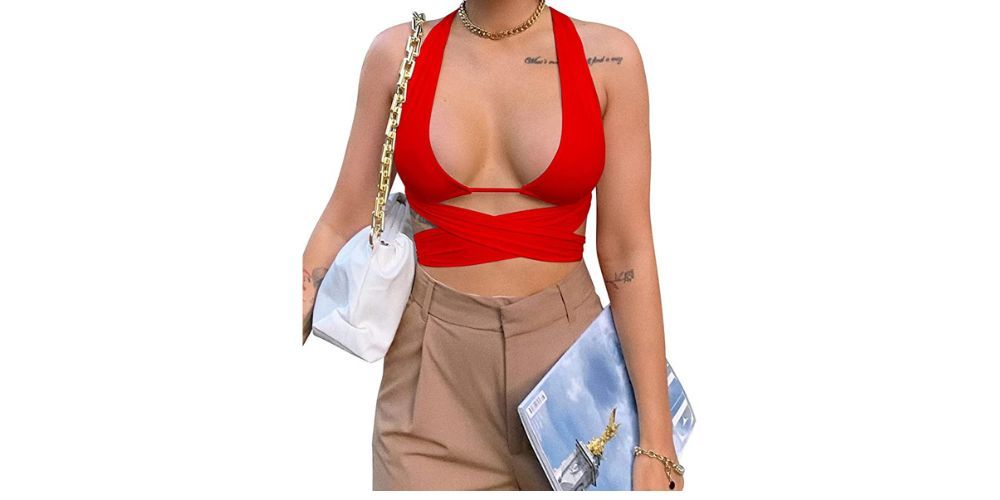 Made from a soft and lightweight fabric, this crop top is available in various colors and patterns, making it perfect for any occasion. Customers can't get enough of the trendy design and comfortable fit, with one review saying, "Love the material. It is soft but sturdy. Has a double layer in the bust area. Love it so much got it on all three colors it comes in. Wish they had more colors 'cause I would get them too." Want to know how to style this versatile top? Accessorize with a pair of high-waisted jeans and a statement necklace for a chic and effortless look.