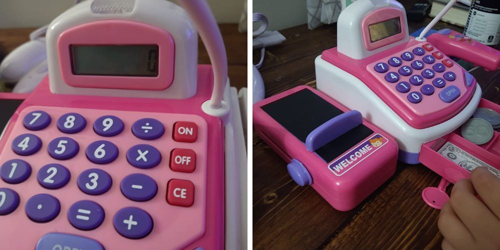 5-Star Review: “This is the perfect size and amount of items that come with the cash register. Our grandkids love it!!” – TF