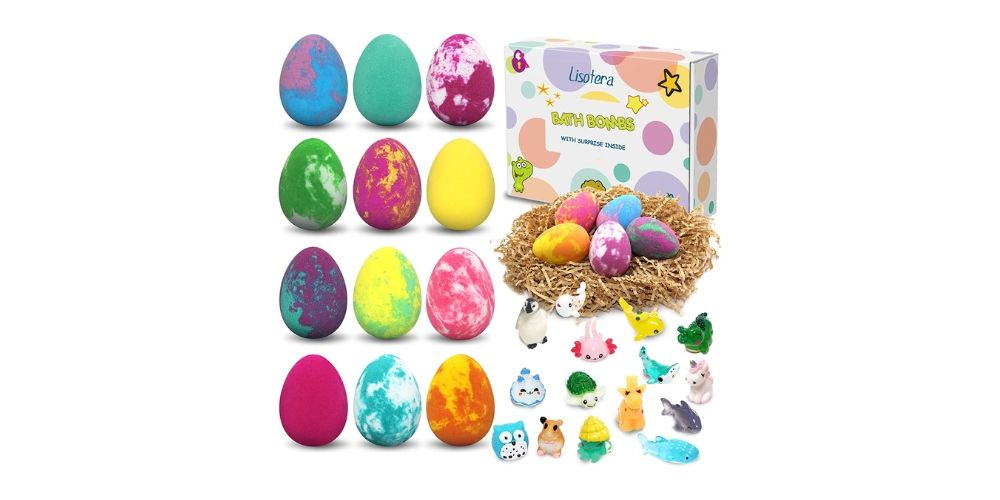 Get ready for a bath time adventure with Easter Egg Bath Bombs! These small but mighty bombs turn your regular bath into a fizzy wonderland. With 12 unique fragrances available, you can switch up your experience every day. And the best part? Each bomb comes with a surprise toy inside! Your kids will love watching it fizz and bubble away to reveal an exciting new toy. Made with high-quality ingredients, these bath bombs will leave your skin feeling silky smooth. While not recommended for sensitive skin, everyone else can enjoy this fun and relaxing activity. So go ahead and treat yourself (and your kids) to a memorable bath time – you won't regret it!