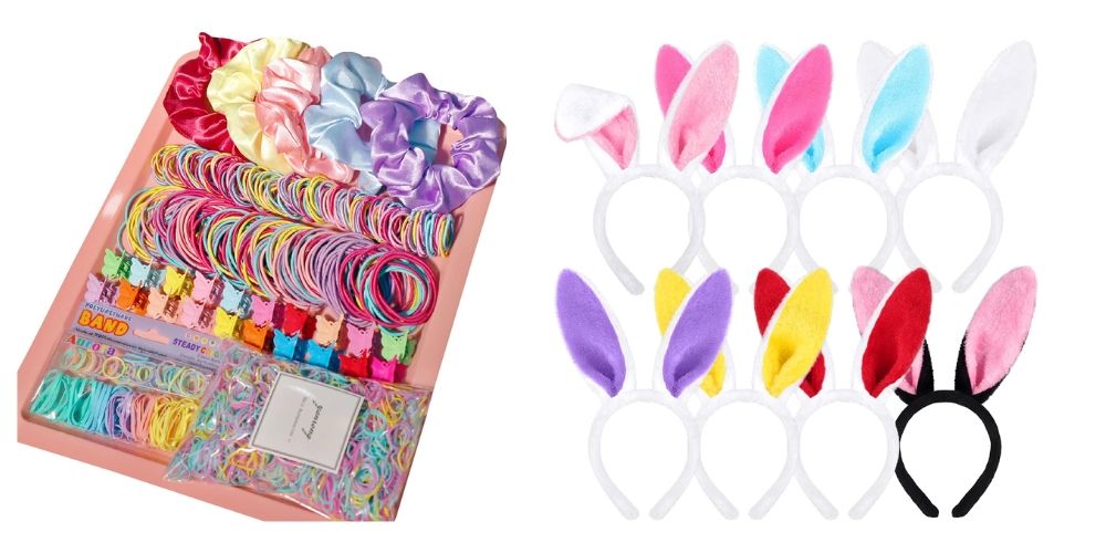 Easter is the perfect time to experiment with cute and colorful hair accessories. These products consist of multicolor ponytails, clips, scrunchie, and bunny headbands that are sure to put a smile on any child's face.