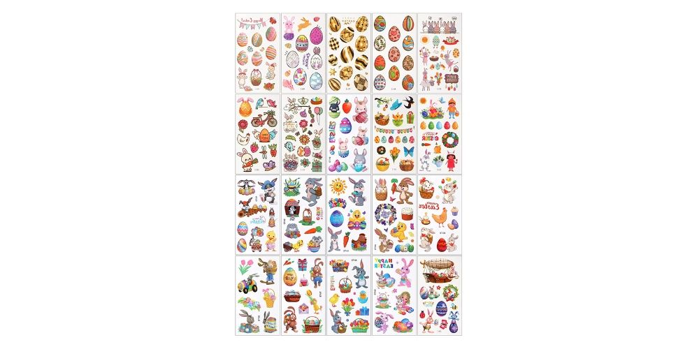 Level up the Easter festivities with these stylish and safe temporary tattoos! With 20 sheets of 242 decorations featuring various styles in bright colors, there's no limit to how fabulously festive your shindig can be. Not only are they fun for adults and kids alike - their gentle materials also make them suitable even for sensitive skin types. Let the merrymaking begin with extra flair this Easter season – decorate away!
