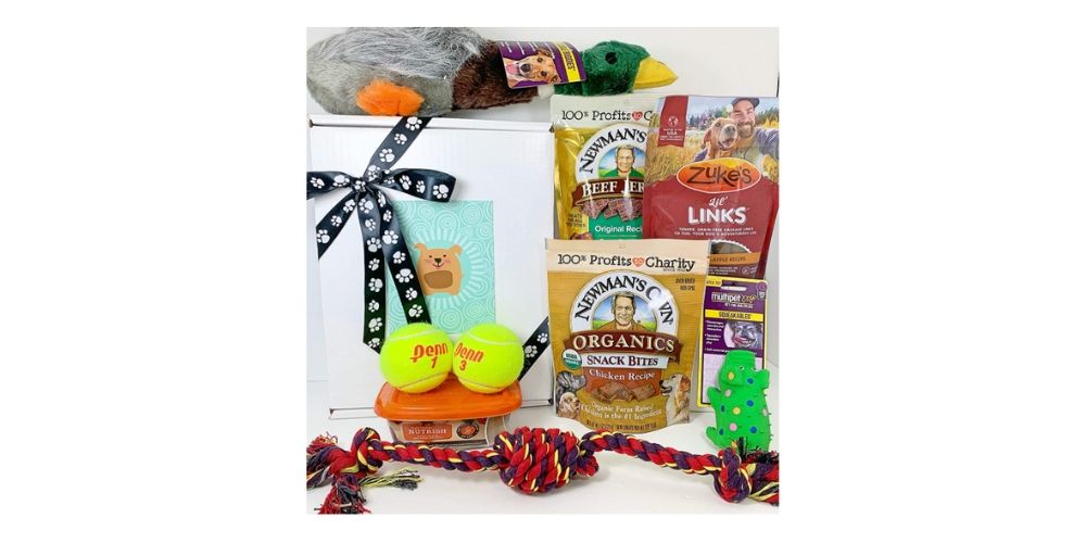 If you're looking for pre-made easter baskets for someone who has a dog, then this one is for you. This box is packed with goodies that are sure to delight both dogs and their humans. From high-quality organic treats to interactive toys that your pup will surely enjoy. And finally, the basket comes in a white glossy, sturdy gift box (no cheap basket or flimsy cellophane) with a cute picture of a dog, hand-tied with a black ribbon sporting paw prints. It's the perfect way to show your love for dogs and humans. Plus, this gift set can be delivered straight to your friend or loved one!