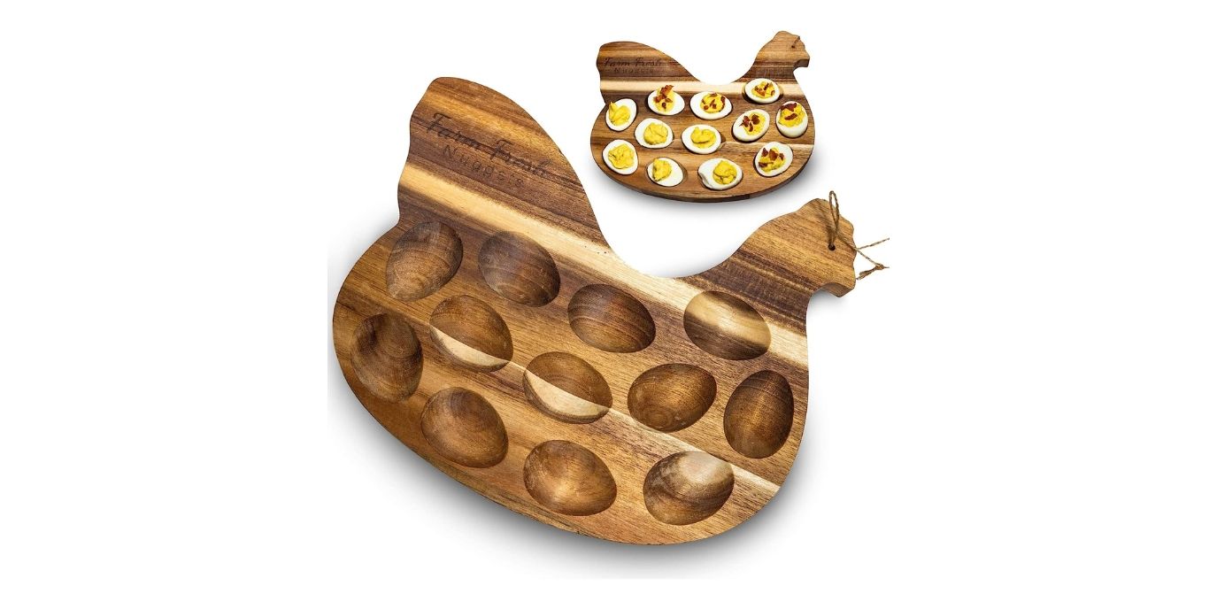 With stunning 2-inch thick wood that's sturdy and reliable, you'll be serving up those farm-fresh nuggets in style for years to come! And with a a 5-star review raving about its delightful presentation and crowd-pleasing appeal, grab one now and let the egg-pocalypse begin!