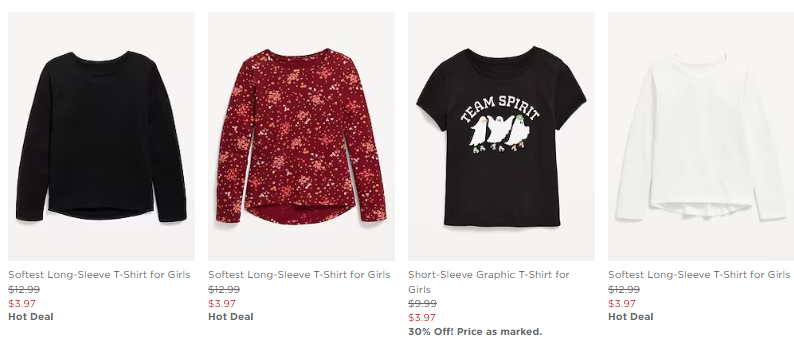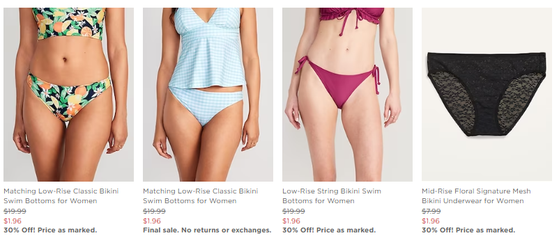 Whether you're in the market for women's, men's, girls', or boys' clothing, Old Navy has it all. From women's panties and bikini bottoms starting at just $1.96 to men's sweatpants for as low as $8.73, the deals are irresistible. Even girls' shirts are on sale for as little as $2.78. Check out the wide range of options available and start adding to your cart.