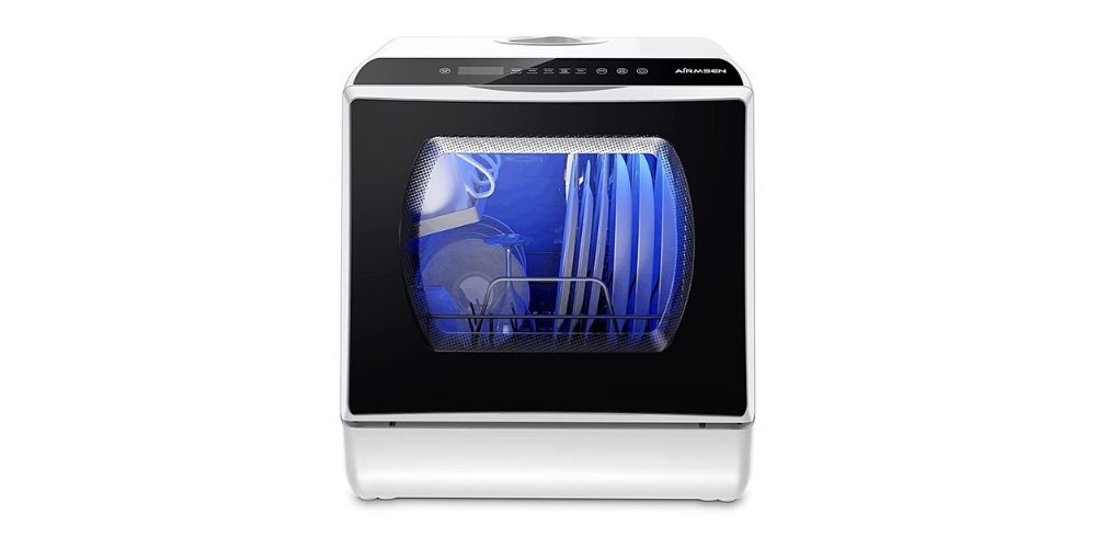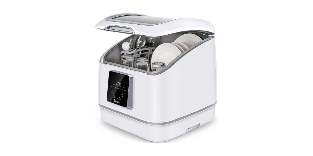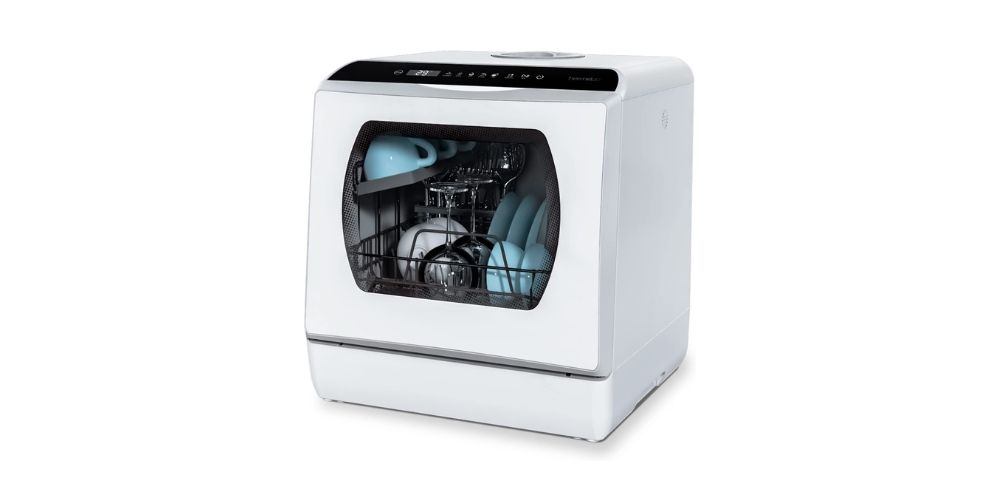 The Hermitlux Countertop Dishwasher is an ideal choice for those looking for powerful and sleek cleaning portable models. This model supports two water supply modes, so you can choose whichever suits your needs. In addition, it comes with a unique glass door that allows you to see the dishes being washed inside.