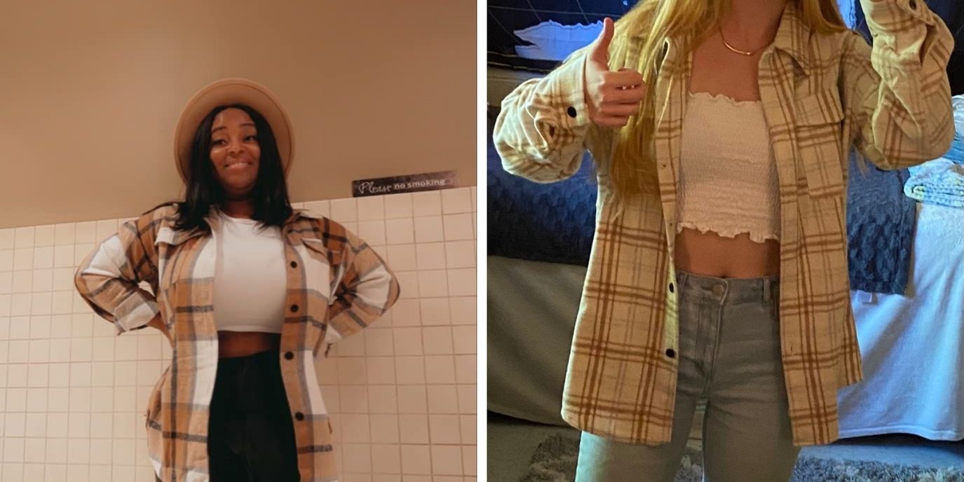 5-Star Review: “Love, love, love this shacket! I bought both black and brown in the Houndstooth pattern. Everyone seems to be wearing the plaid shackets and I wanted to do something a little different and I'm glad I did. They run large so I would go down a size. I normally wear a large and ordered a medium and it fits perfectly!” – eab