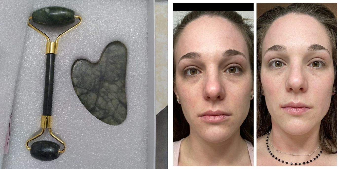 5-Star Review: “This is such a beautiful Jade roller and Gua Sha stone!! I'm so happy I bought this and I can't wait to try it on my skin. It looks like a real jade stone, has weight to it, and is very cold to the touch. The roller is high quality, not cheap at all. It has a silicone barrier around the rod so that when it spins, it doesn't squeak. The gold detailing is also gorgeous! The Gua Sha stone is a bit thin looking, but it's definitely still real stone and sturdy so it's not going to break on you. Just be careful not to drop it. Overall, this is a great product at a super affordable price, definitely buy it!! I promise you will love it.” – Dani