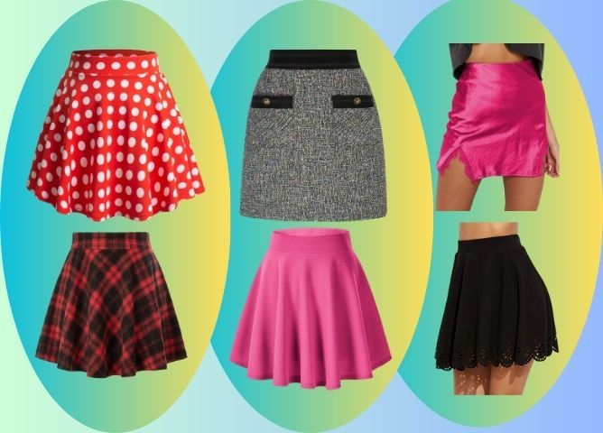 For night-time activities, start with the pleated A-line mini skirt in a bold, bright color. Pair this fun mini skirt with the satin long-sleeve blouse in a matching or complementary hue. This satin blouse adds a touch of sophistication and pairs well with the playful skirt.
